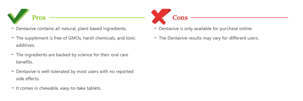 Dentavive is generally free from serious side effects because it uses natural, plant-based ingredients. A small number of users report mild stomach upset or dryness during the first week, which usually subsides when taken with food and sufficient water. No severe or long-term reactions have been recorded.