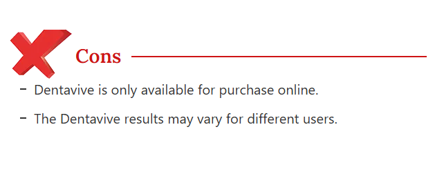 Every single Dentavive supplement purchase is backed with a 60-day 100% money-back guarantee. So if you are not impressed with the results, you can simply choose this refund policy for getting your complete money back. Even though the Dentavive formula is made using natural ingredients its effect on individuals may vary. If you have used the supplement for the suggested period of time and didn’t get the expected results then the refund policy is yours to claim.